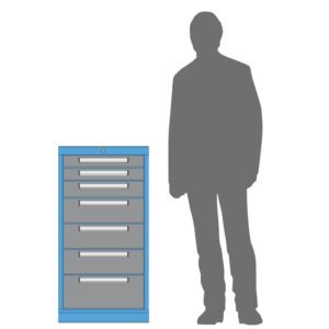 The IHL Series 700 workbench-height modular drawer cabinets are made from welded 16 and 14 gauge steel, providing durability for industrial settings, educational environments, and garage workshops. Standing at 32.50 inches tall, these cabinets come in a variety of pre-configured drawer combinations to suit your specific storage needs.