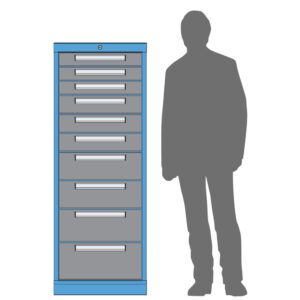 The IHL Series 1350 eye-level height modular drawer cabinets are made from durable welded 16 and 14 gauge steel, ideal for industrial settings, educational environments, or garage workshops. Standing at 59.25 inches tall, these cabinets come in various pre-configured drawer combinations to accommodate diverse storage needs.