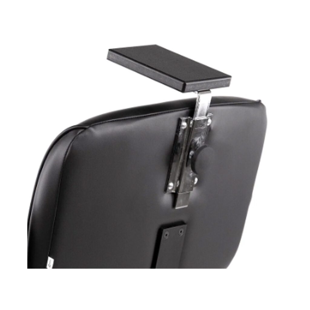 As an added benefit, the mannequin head clamp no longer has to be fastened on the work surface at an awkward height and in poor relation to the mirror. The Simulator attaches to the chair like a headrest and can be added to existing hydraulic and/or shampoo chairs as well with wooden backs to allow 3″w x 5″h bracket to screw into.