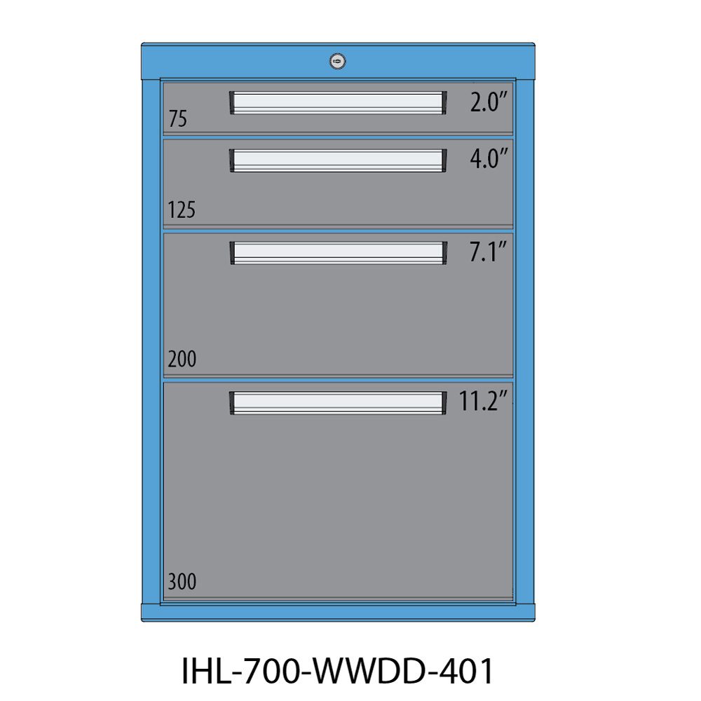 IHL-700-1824-401 / 18''W x 24''D x 32.50''H / 4 Drawer Cabinet, IHL-700-2424-401 / 24''W x 24''D x 32.50''H / 4 Drawer Cabinet, IHL-700-3024-401 / 30''W x 24''D x 32.50''H / 4 Drawer Cabinet, IHL-700-3624-401 / 36''W x 24''D x 32.50''H / 4 Drawer Cabinet, IHL-700-4824-401 / 48''W x 24''D x 32.50''H / 4 Drawer Cabinet, IHL-700-5624-401 / 56''W x 24''D x 32.50''H / 4 Drawer Cabinet, IHL-700-1828-401 / 18''W x 28''D x 32.50''H / 4 Drawer Cabinet, IHL-700-2428-401 / 24''W x 28''D x 32.50''H / 4 Drawer Cabinet, IHL-700-3028-401 / 30''W x 28''D x 32.50''H / 4 Drawer Cabinet, IHL-700-3628-401 / 36''W x 28''D x 32.50''H / 4 Drawer Cabinet, IHL-700-4828-401 / 48''W x 28''D x 32.50''H / 4 Drawer Cabinet, IHL-700-5628-401 / 56''W x 28''D x 32.50''H / 4 Drawer Cabinet