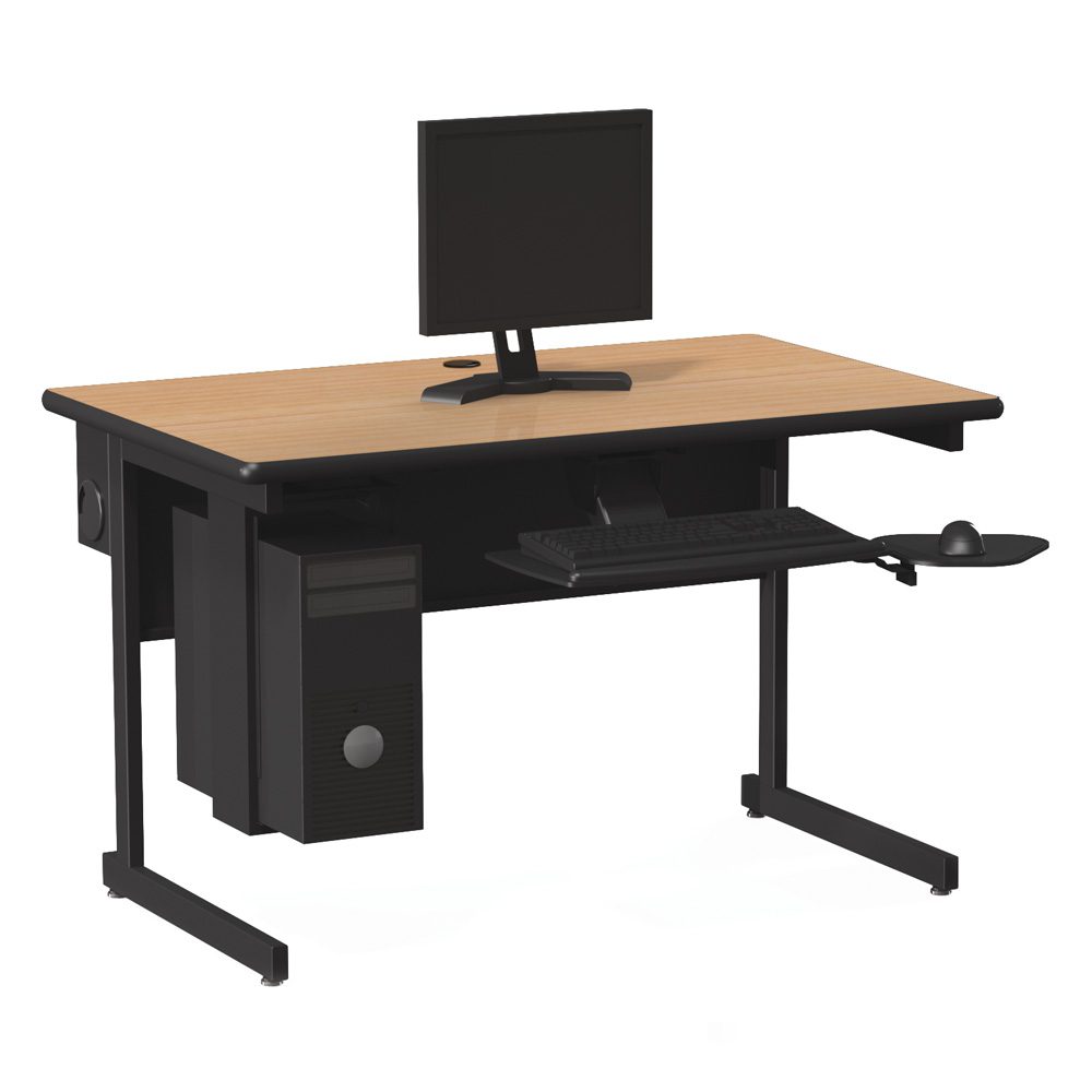 Our PCL-Series computer desk is designed with function and durability in mind. The workstation features durable 16 gauge steel all welded frame construction with 18 gauge steel modesty panels. Laminate work surfaces feature a 1-1⁄4″ thick high pressure laminated MDF core with our Polyurea spray applied Armor Edging. All tops feature a balance backer sheet. See color chart for standard and available color options.