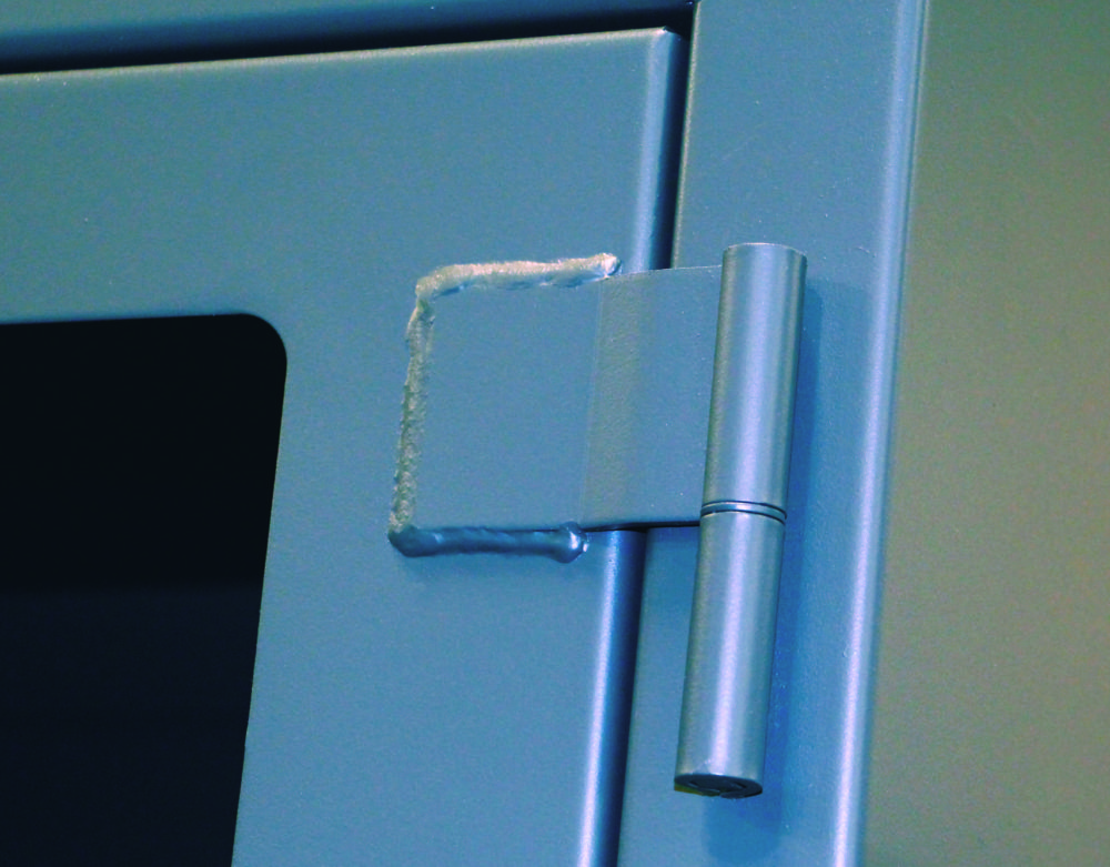 Extreme duty storage cabinets are manufactured to meet the demanding requirements of heavy use in tough environments. Constructed of 12 gauge steel exterior components featuring all welded construction. Cabinet features (14) lower drawers measuring 25.70”x 20.125”d x 4”h. Drawers are mounted on full extension glides with a 250 lb capacity. Divided cabinet has two (3) point door locks with heavy duty steel handles. All welded door hinges. (4) 14 gauge steel shelves (2 adjustable) with a weight capacity of 1850 lbs per shelf. Bottom leg supports are 6” high and have floor anchor plates.