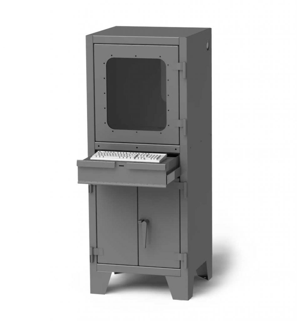 The EX Series computer enclosures are built using all welded 12 gauge steel and designed to provide heavy duty protection for valuable computer terminals on the shop floor.