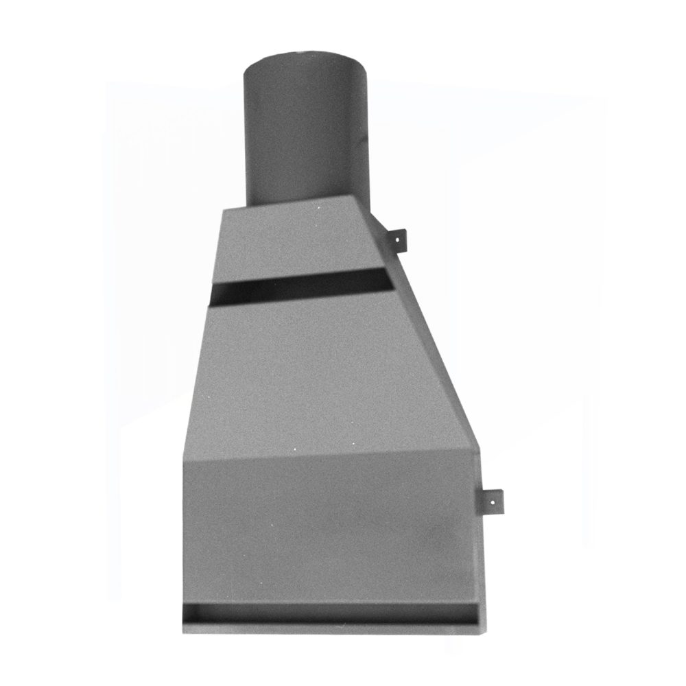 The GAV-1.STR horizontal draw welding vent is designed to be wall mounted over a welding surface. Gases are vented out the two 2″H air intakes that run the full width of the hood. The rectangle body transitions into a round 12″OD outlet for connection to exhaust ducting.