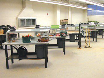 Designed to keep soils and supplies organized while putting your plantings or arrangements together. The sturdy formed channel base features a galvanized steel work surface and upper riser shelf. Included are (3) bins and (1) trash receptacle. The work surface features a hole to allow easy cleaning into the under-top trash receptacle. The work station is available with a fixed or portable base.