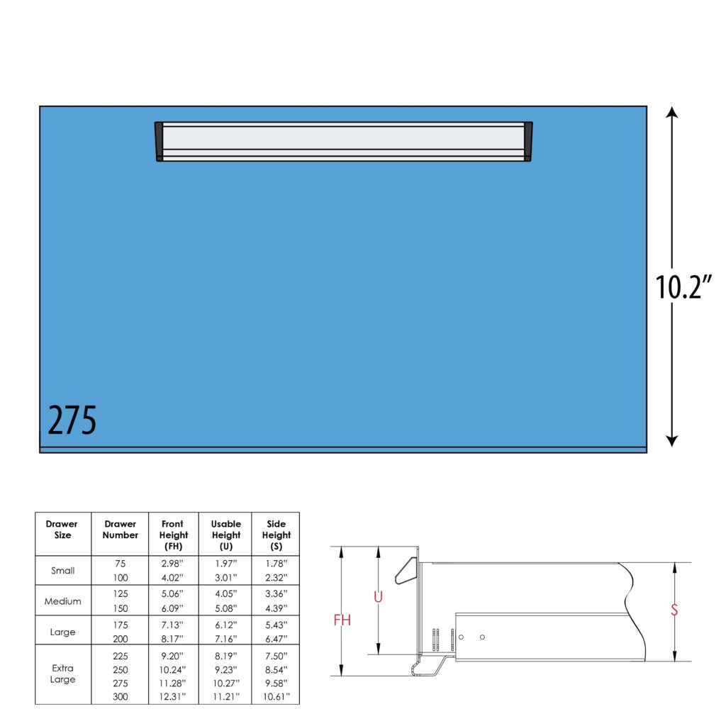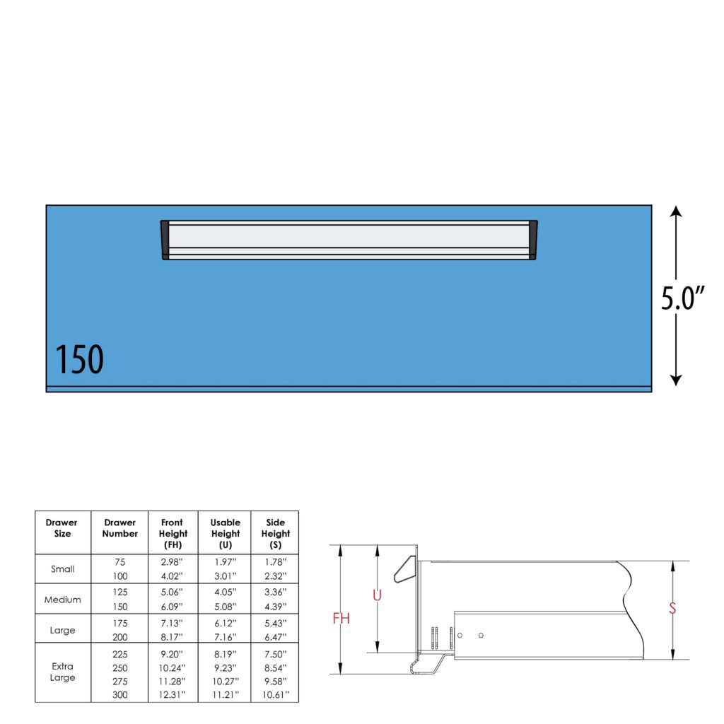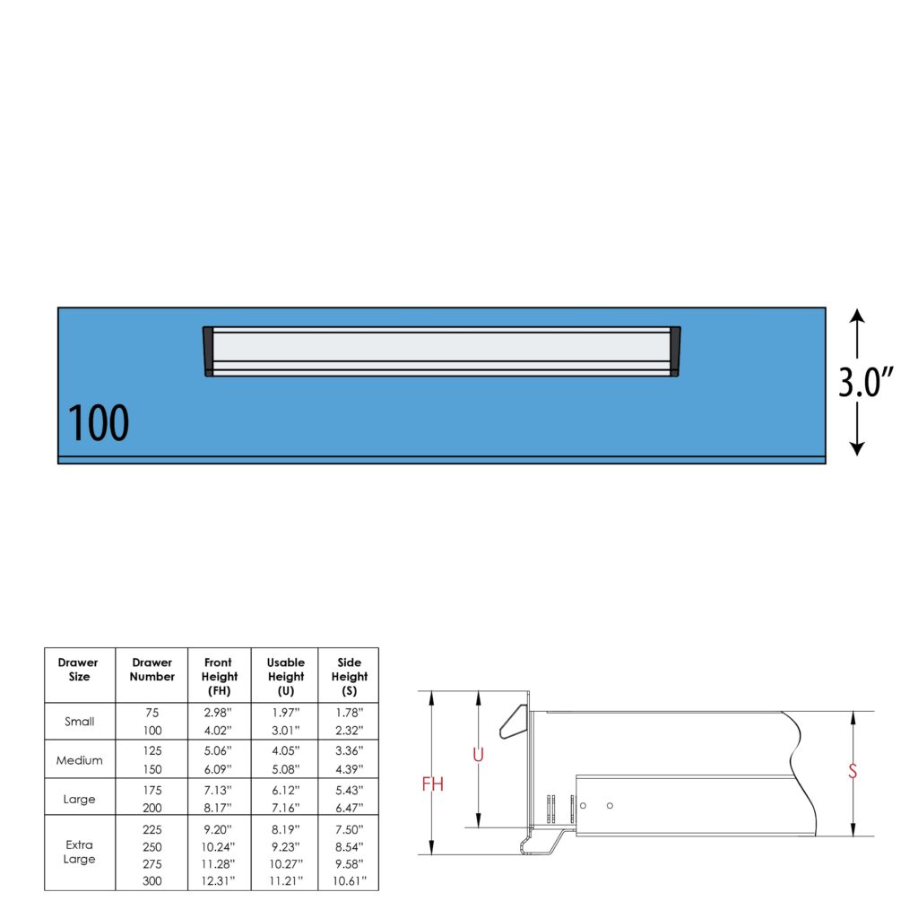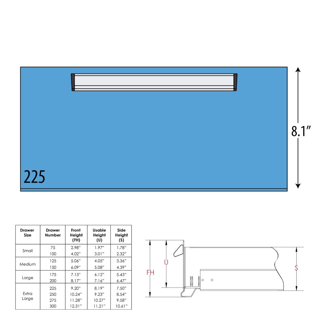 Cabinets feature drawers that fully extend on 250 lb. ball bearing drawer glides that ensure you get maximum usability from every drawer. The contents of your drawers and cabinets remain secure with a keyed cylinder style lock. Drawers are configured in a variety of heights that range from our smallest 3”H drawer face height up to 12”H for storage of larger components. Drawer faces are inset within the workstation for a clean and professional look.