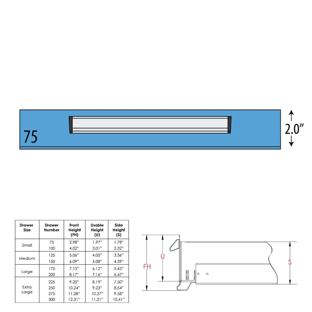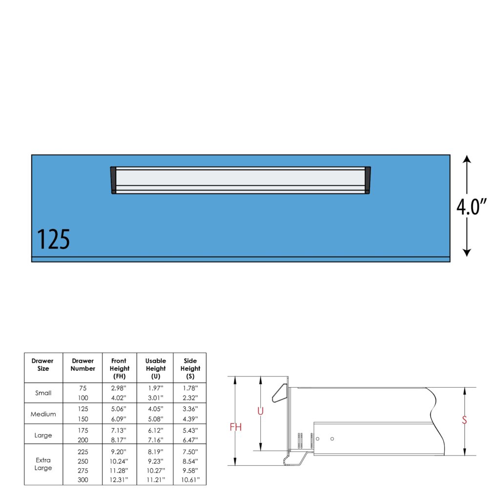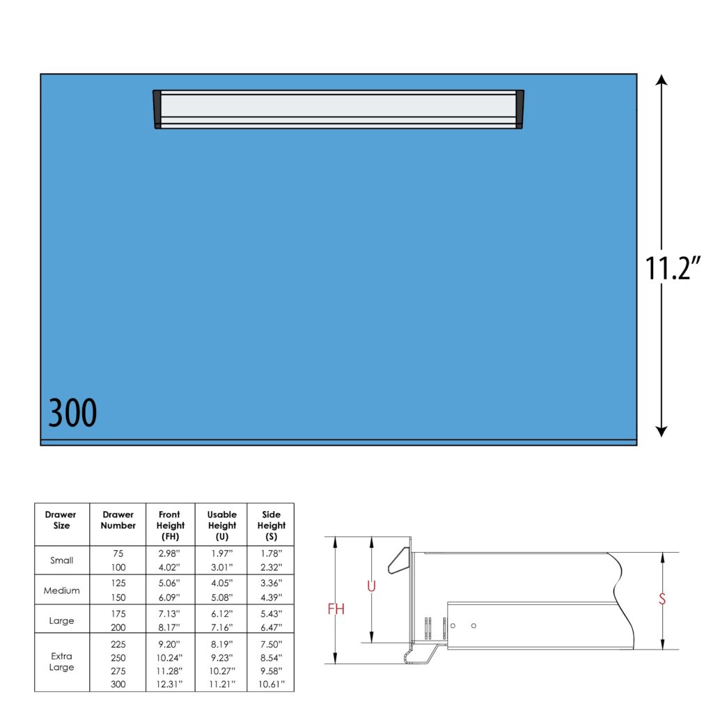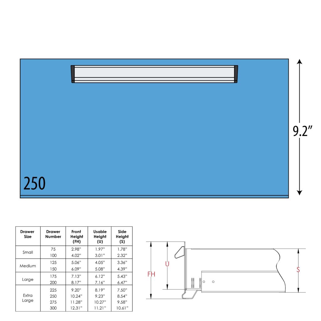 Cabinets feature drawers that fully extend on 250 lb. ball bearing drawer glides that ensure you get maximum usability from every drawer. The contents of your drawers and cabinets remain secure with a keyed cylinder style lock. Drawers are configured in a variety of heights that range from our smallest 3”H drawer face height up to 12”H for storage of larger components. Drawer faces are inset within the workstation for a clean and professional look.